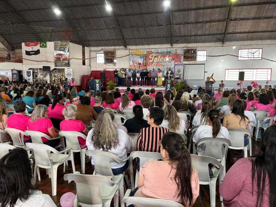 O vice-prefeito Lucio De Marchi destacou a gratidão do município às trabalhadoras rurais, afirmando que Toledo deve muito ao povo do campo e que o encontro representa todas as regiões do município. Ele ressaltou que a gestão reativou a Secretaria da Mulher por reconhecer sua importância para o desenvolvimento local. “Toledo é o que é, nós devemos sim ao homem e à mulher do campo. As pessoas que criticam têm que trazer ideias e ajudar a melhorar o trabalho. Reativamos a secretaria porque sabemos a importância da mulher para o desenvolvimento de Toledo”, disse.