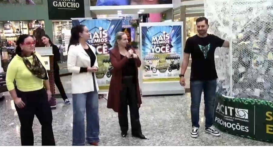 A quarta edição do sorteio da campanha "Mais Prêmios para Você", promovida pela Associação Comercial e Empresarial de Toledo (Acit), aconteceu no final da tarde desta quarta-feira (31) no Shopping Panambi. Três motocicletas foram entregues a sortudos clientes que realizaram compras em lojas participantes durante o mês de julho. Além das motos, três vendedoras também foram premiadas com R$ 1.000,00 cada.