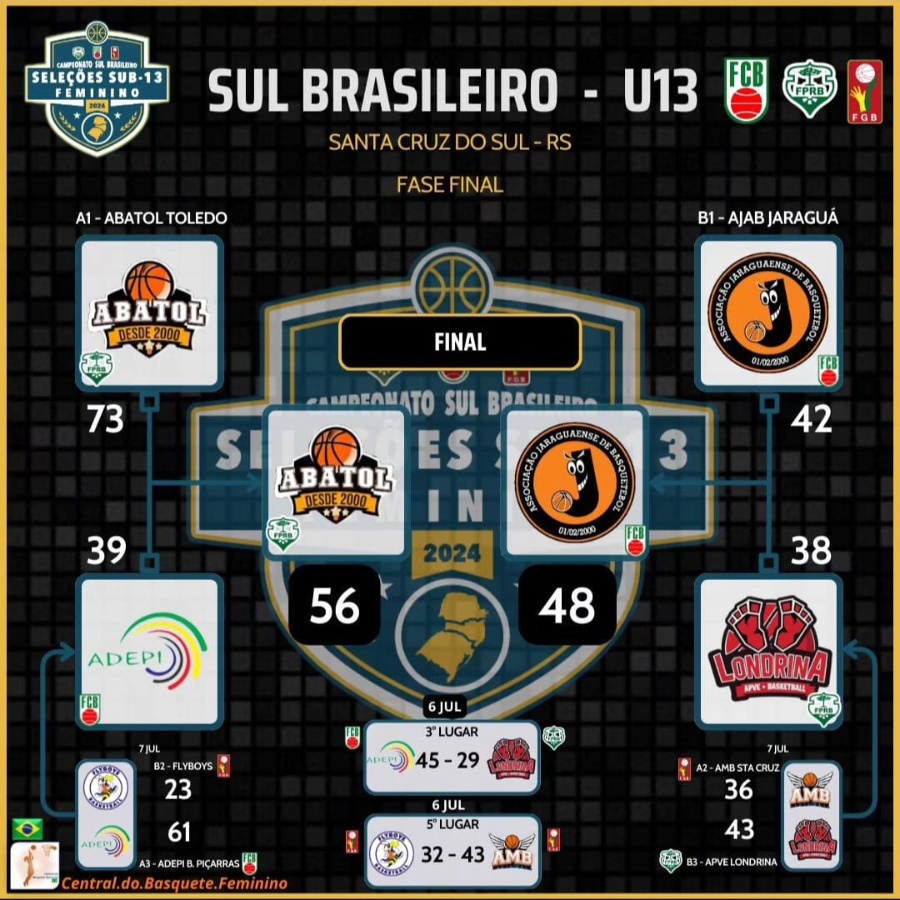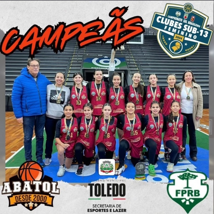 O time de basquete feminino sub-13 da Associação dos Amigos do Basquete de Toledo (Abatol) conquistou o título do Campeonato Sul-Brasileiro em Santa Cruz do Sul (RS) no último domingo (07/07).