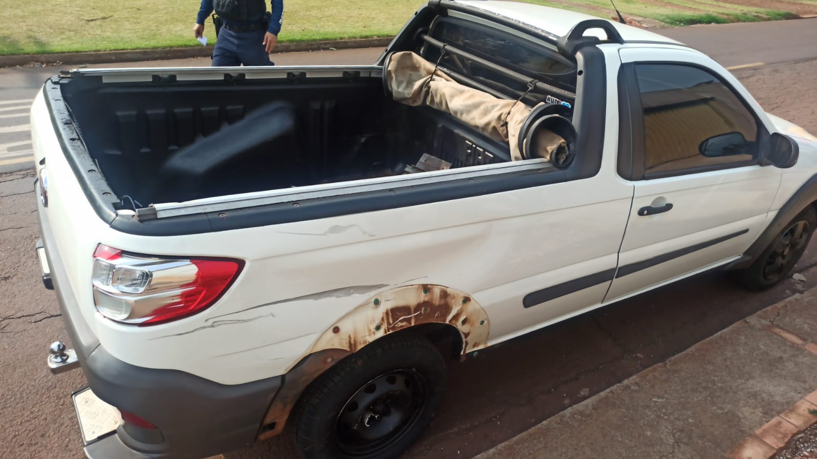 De acordo com informações, a moto Honda CG Titan de 125 cilindradas, conduzida pelo homem, trafegava pela Rua Carlos Sbaraini quando colidiu com a picape Fiat Strada, placas Mercosul, que seguia pela Rua Osvaldo Aranha.