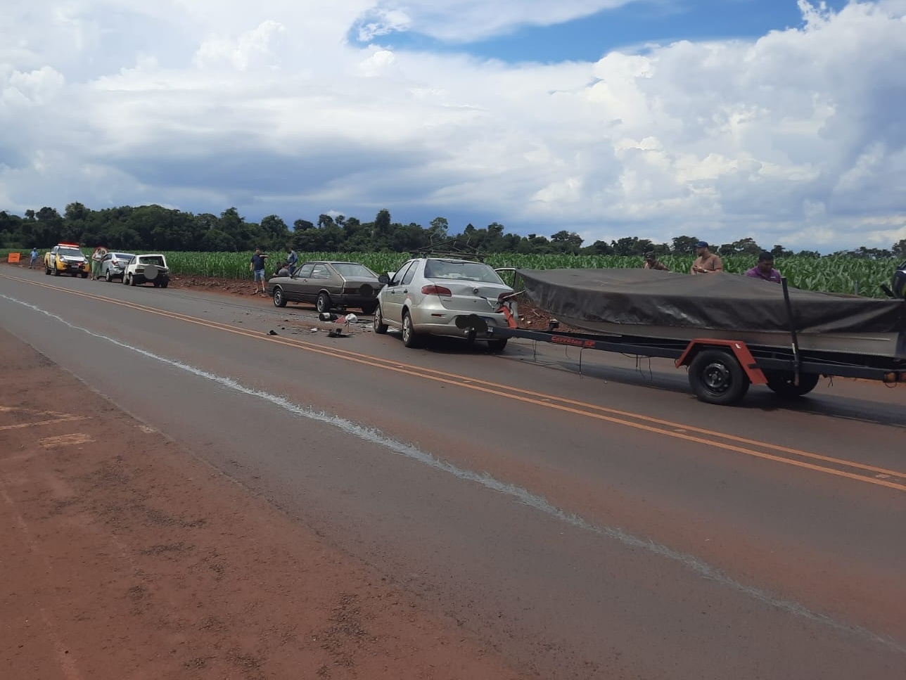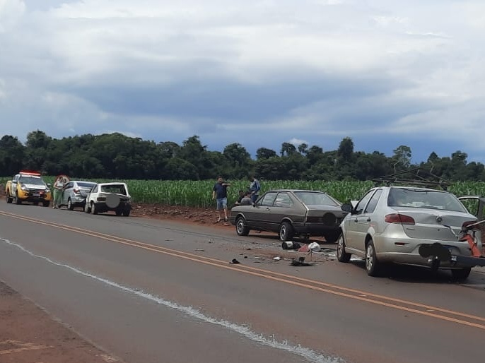 Conforme a PRE, que atendeu ao acidente, o engavetamento envolveu quatro veículos, sendo três deles com placas de Toledo (VW/Gol, Fiat/Siena e VW/Passat) e um GM/Prisma, de Palotina.