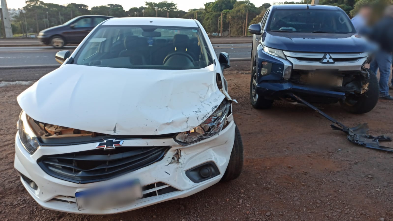 Conforme as informações, Volkswagen Polo colidiu com a caminhonete Mitsubishi L200, a qual atingiu um Chevrolet Prisma, que aguardava na fila formada no local.
