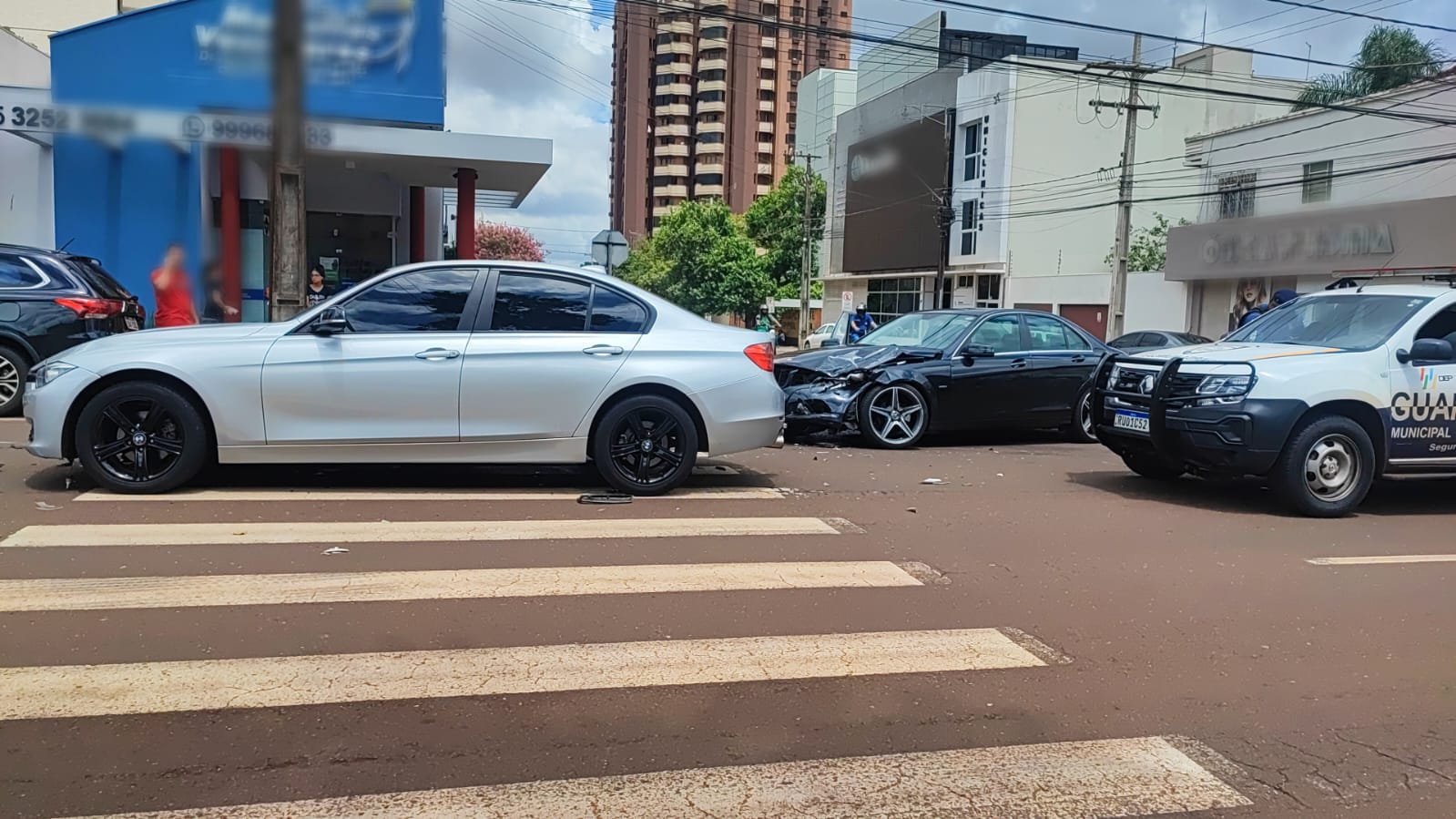 A Guarda Municipal e a Polícia Militar compareceram ao local. Os carros ficaram bastante danificados.