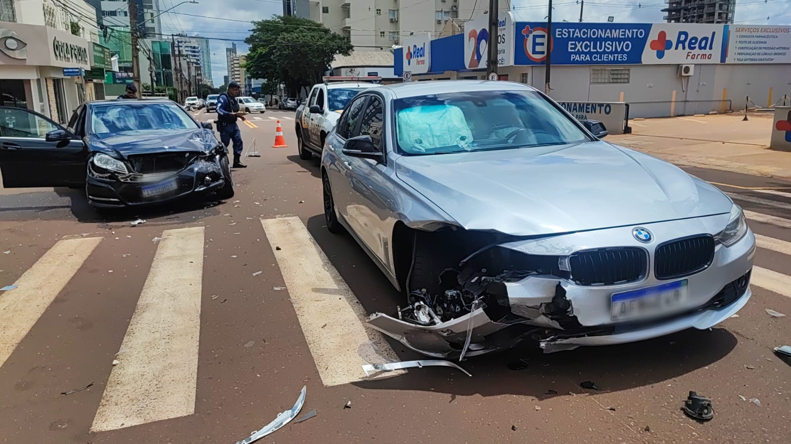 O motorista da Mercedes-Benz sofreu uma possível fratura no braço e foi levado pelo Corpo de Bombeiros para receber cuidados médicos. O condutor da BMW saiu ileso do acidente.