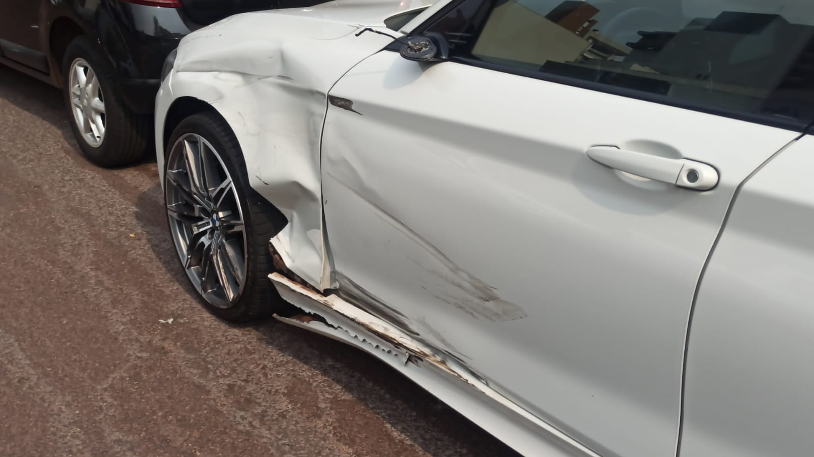 A BMW teve danos na lateral, enquanto que a moto teve a roda dianteira destruída com a batida. A Guarda Municipal esteve no local para atender a ocorrência.