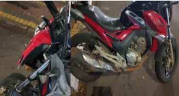 A falta de sinalização clara resultou em uma colisão entre a motocicleta e o automóvel, causando danos materiais à motocicleta. Itens como o pedal direito, a maçaneta de freio direita e a capa do escape foram danificados.