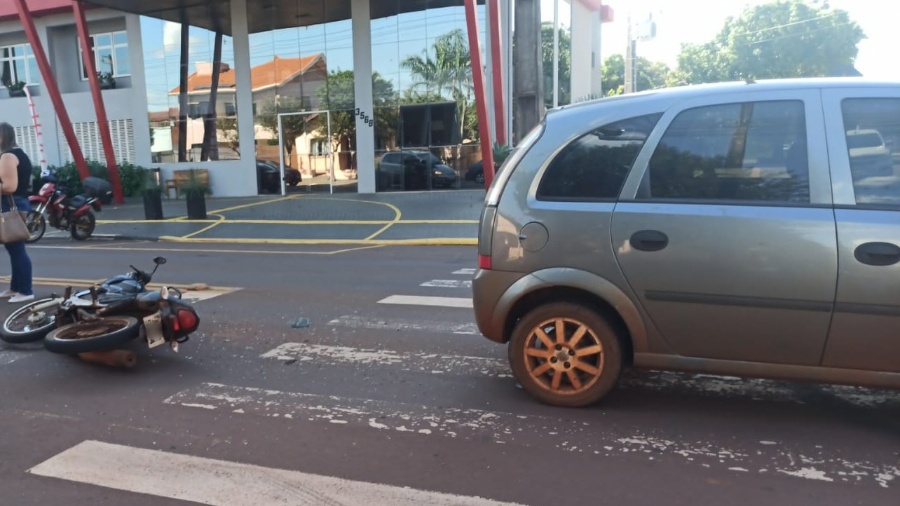 Um motociclista ficou ferido em um acidente na tarde desta quarta-feira (08) na Rua Guarani, na Vila Becker em Toledo. A colisão envolveu um Chevrolet Meriva e uma Honda CG Fan 150.