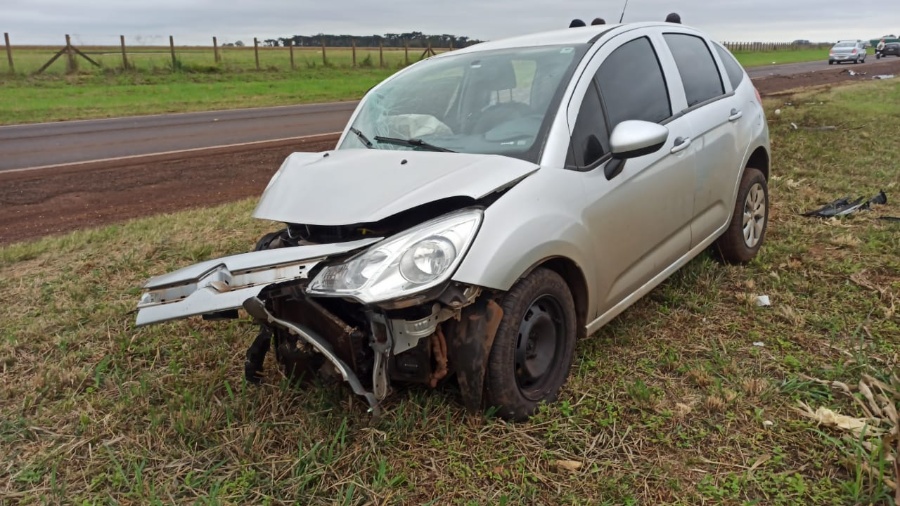 O carro, um Citroen C3 seguia em direção à Toledo, quando colidiu com o rodado traseiro da carreta bitrem, que seguia no sentido contrário.