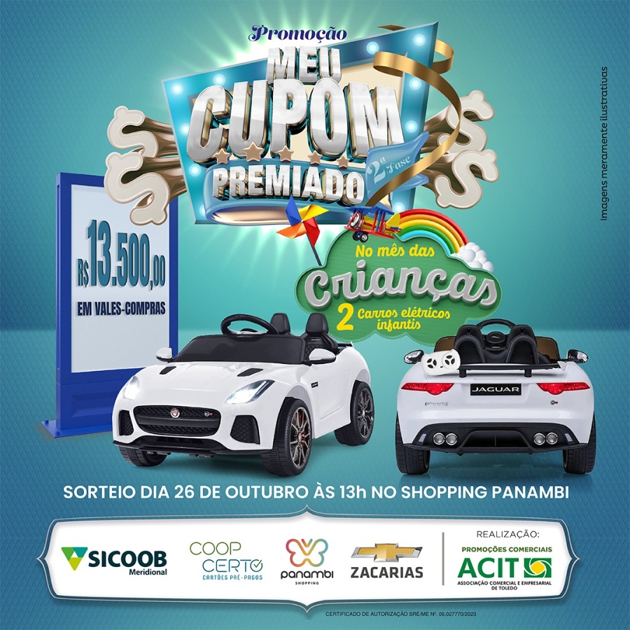 Nesta quinta-feira, dia 26 de outubro, a ACIT sorteia os segundos prêmios da campanha Meu Cupom Premiado ACIT – 2° fase. A premiação contempla o Dia das Crianças.