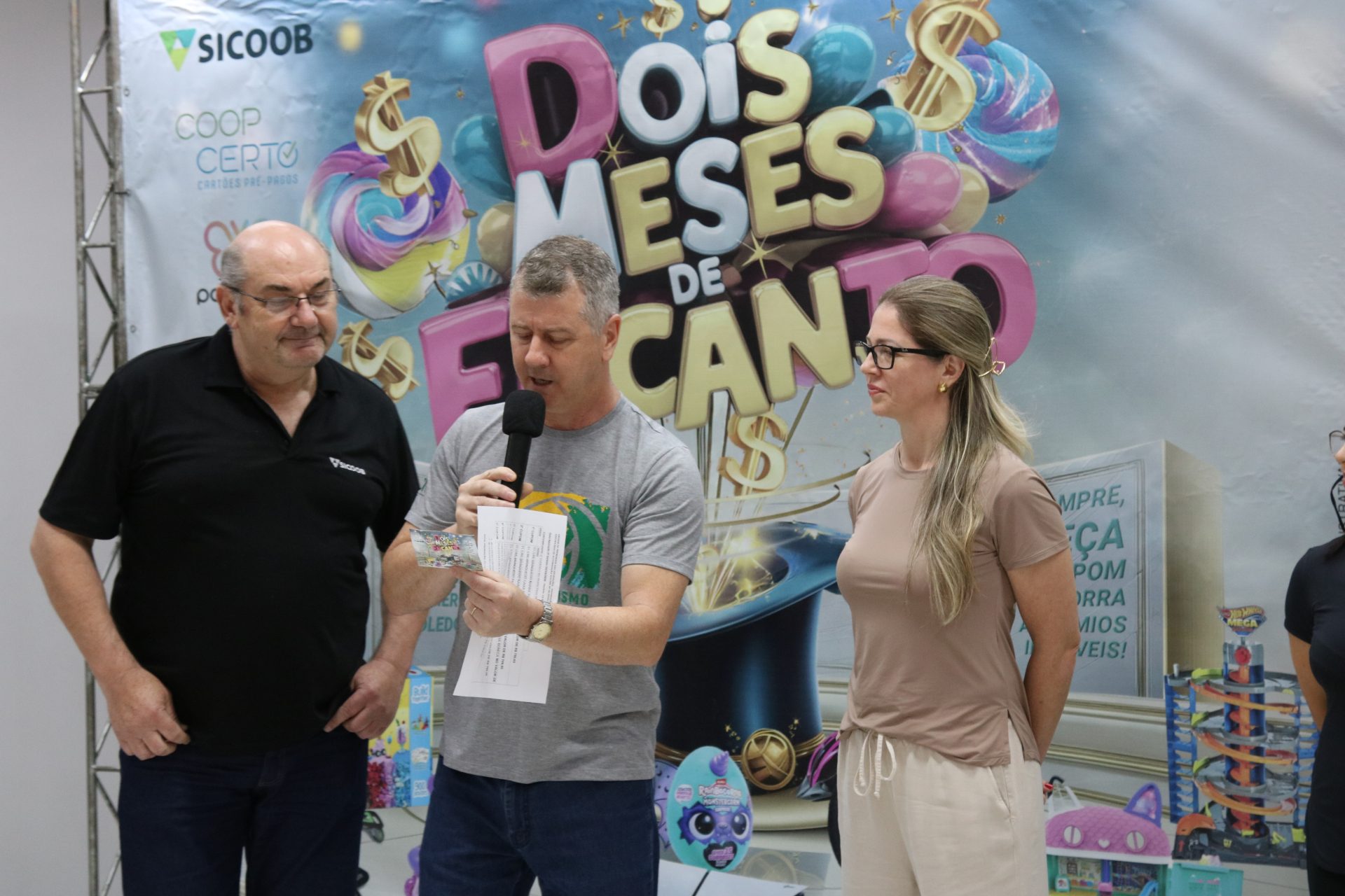 O sorteio contou com a presença do presidente da ACIT, Cristiano Dall’Oglio da Rocha, do diretor superintendente do Sicoob Meridional e representante da Coopcerto Cartões, Sonir Dala Barba, da diretora do Shopping Panambi, Tatiane Pellizzaro. Os cupons foram auditados pela empresária associada, Joceli Alves.