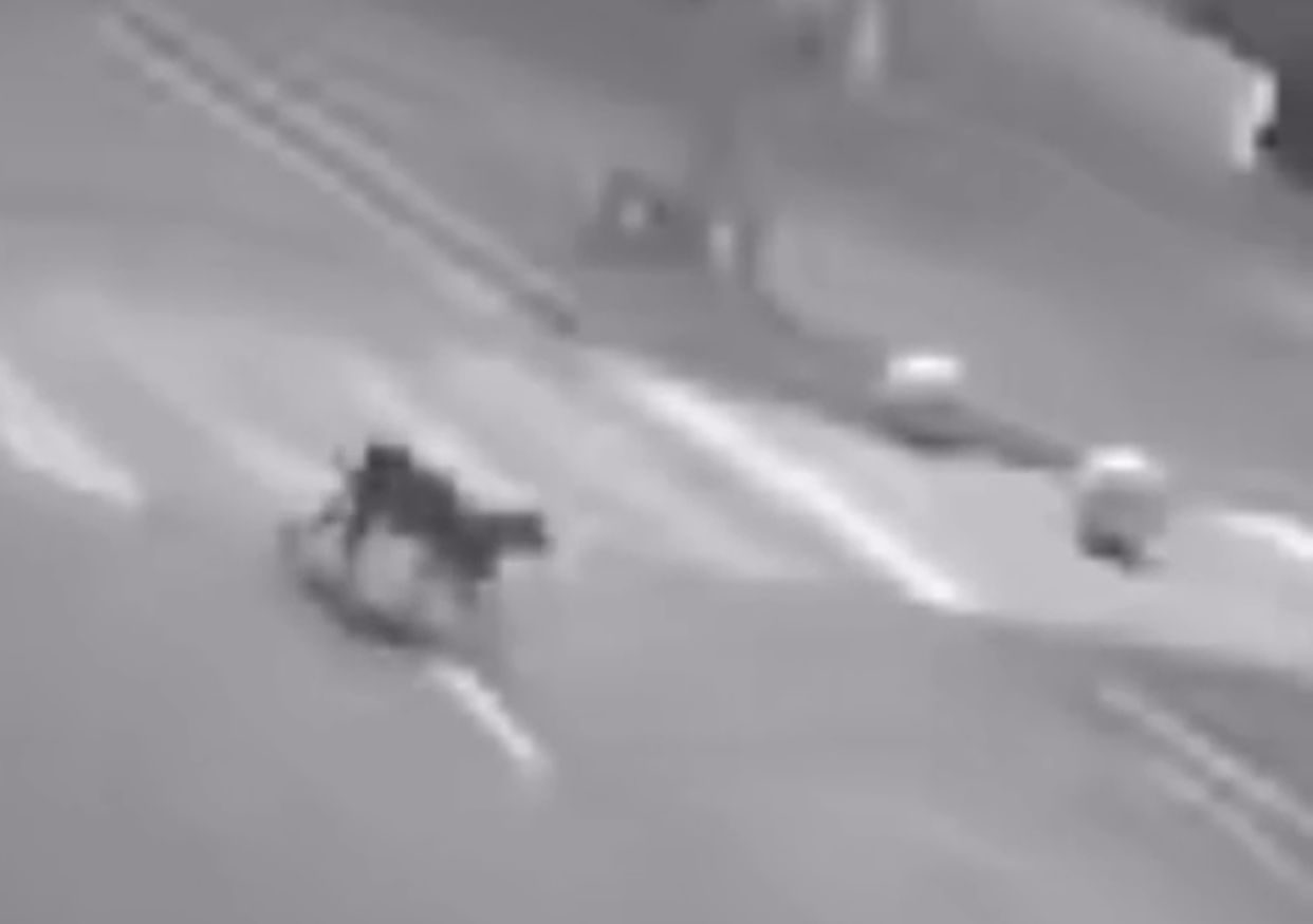 O animal foi flagrado por câmeras de monitoramento, caminhando pela Avenida Maripá, região do Parque dos Pioneiros.