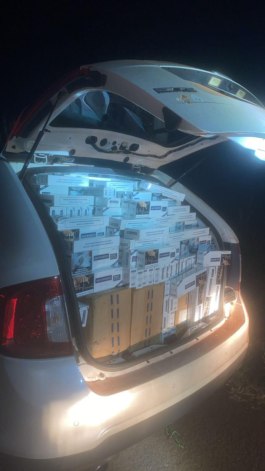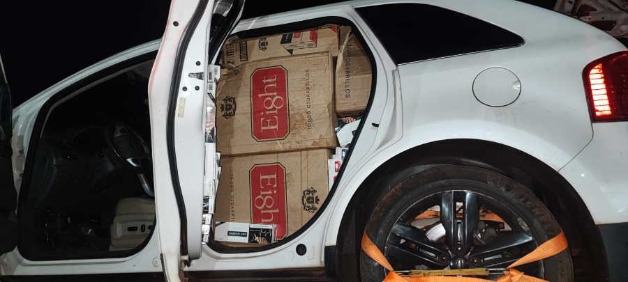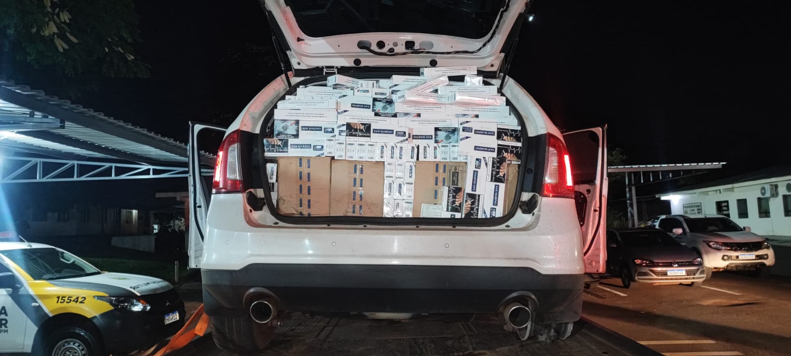 No interior do Ford/Edge, os policiais encontraram 35 caixas de cigarros contrabandeados. O veículo e a carga foram apreendidos e encaminhados para a Receita Federal de Cascavel. O motorista não foi localizado.