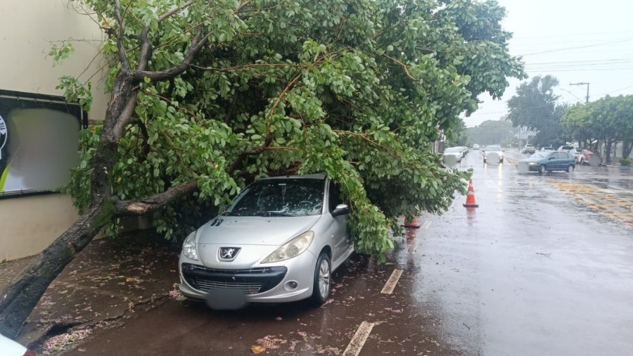 Na Rua Almirante Barroso, no centro, uma árvore caiu sobre um Honda Fit e ainda atingiu parcialmente uma Renault Duster que estavam estacionados. Já na Rua Ledoíno José Biavatti, na Vila Industrial, outro episódio semelhante envolveu um Peugeot 207.
