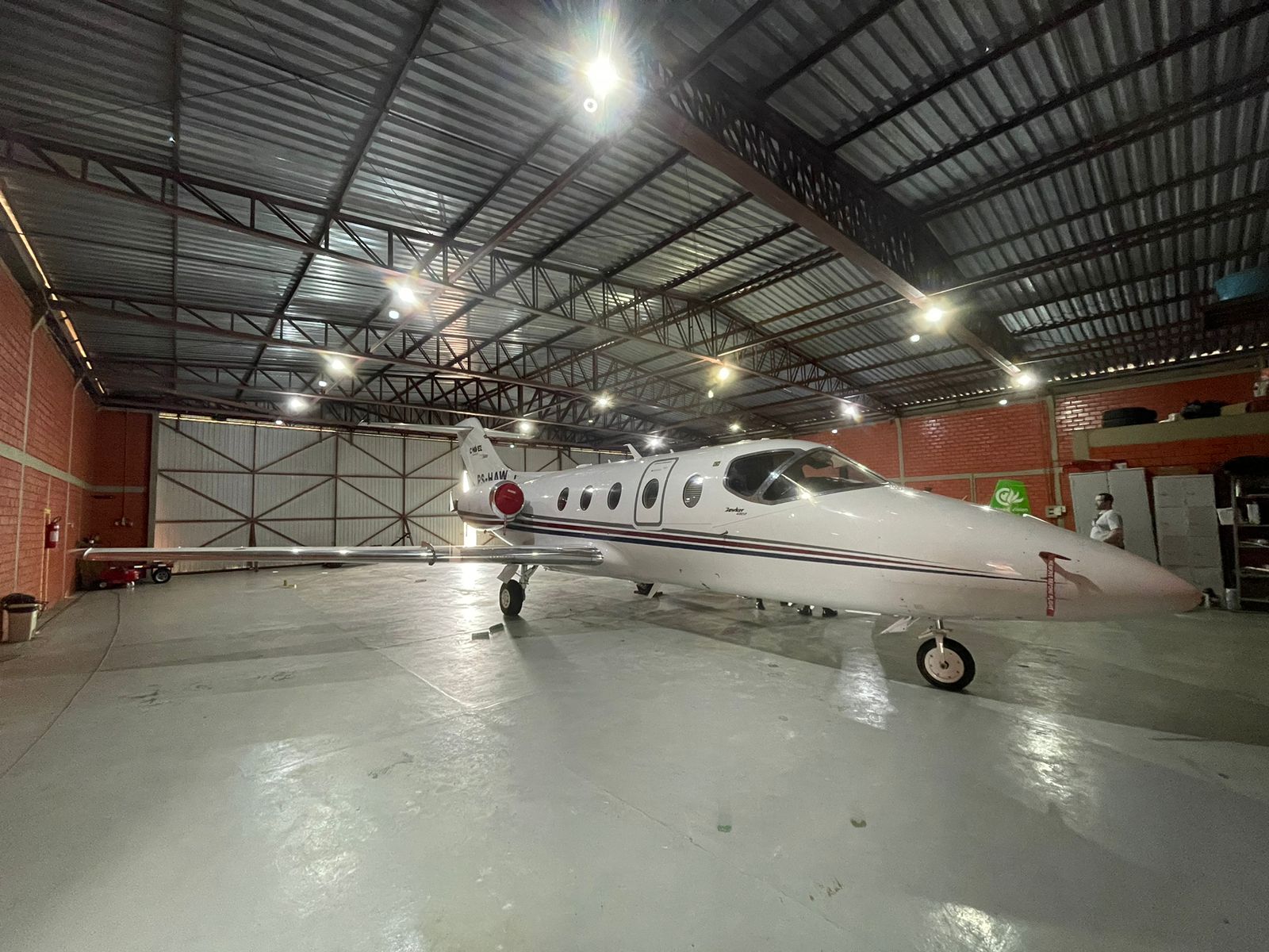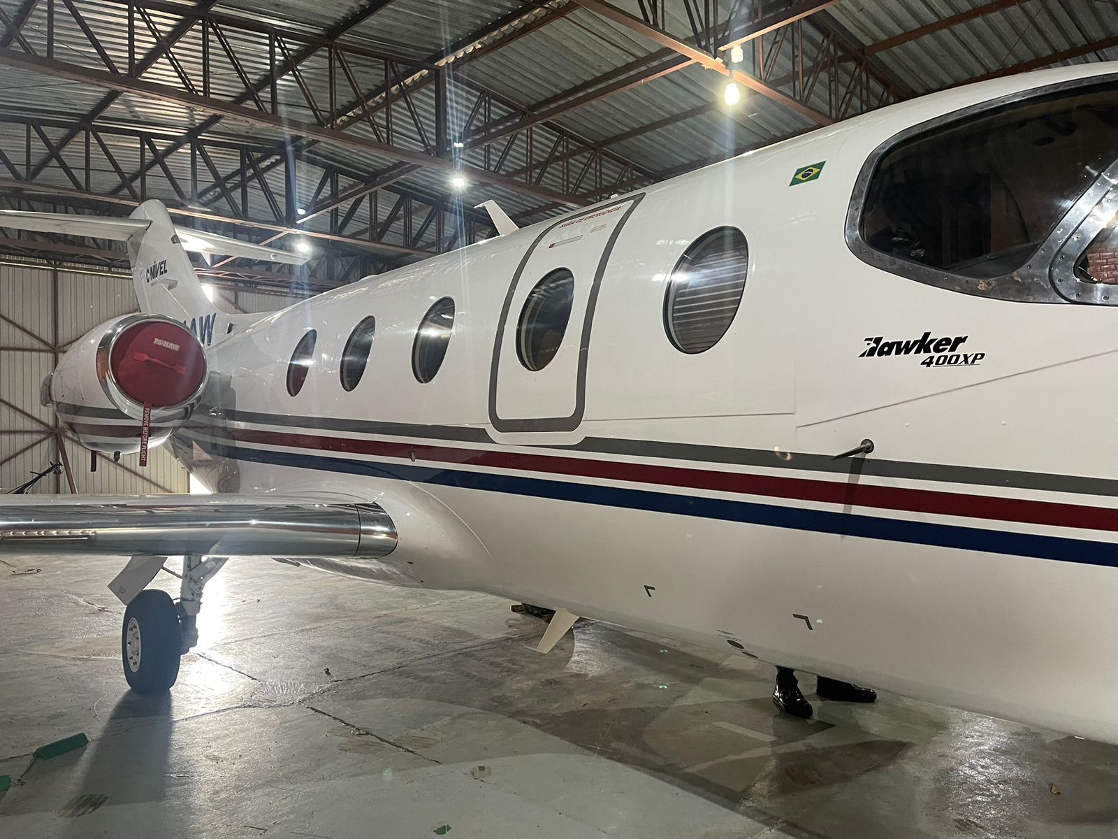 O modelo do jato é Hawker 400xp, fabricado pela Hawker Beechcraft. Ele é adequado para viagens de até 2.700 km e pode levar até 8 passageiros e dois pilotos.