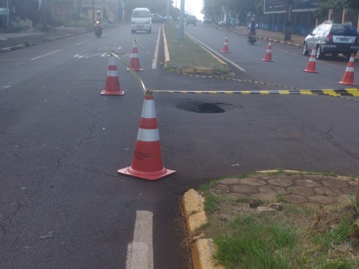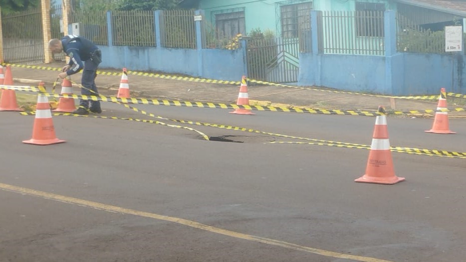 Um buraco de aproximadamente um metro de diâmetro se abriu no meio da Avenida Maripá, na região central de Toledo.