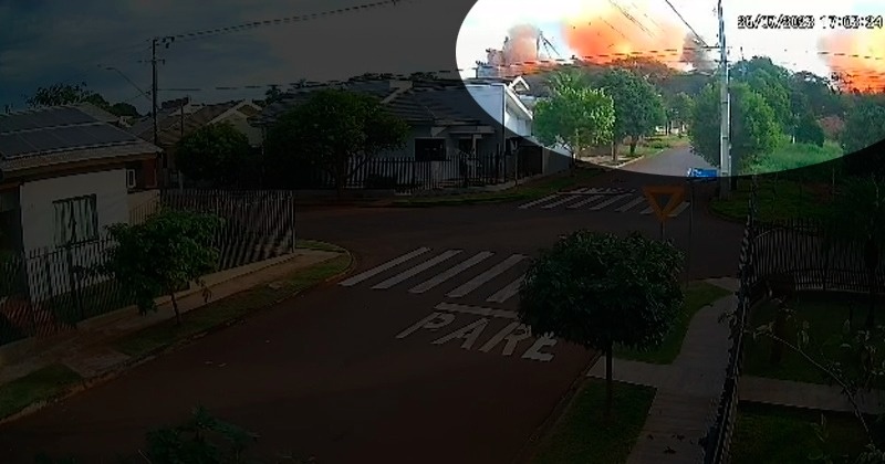 Câmeras de segurança registraram o grande explosão na Cooperativa C.Vale, em Palotina, no final da tarde de quarta-feira (26).
