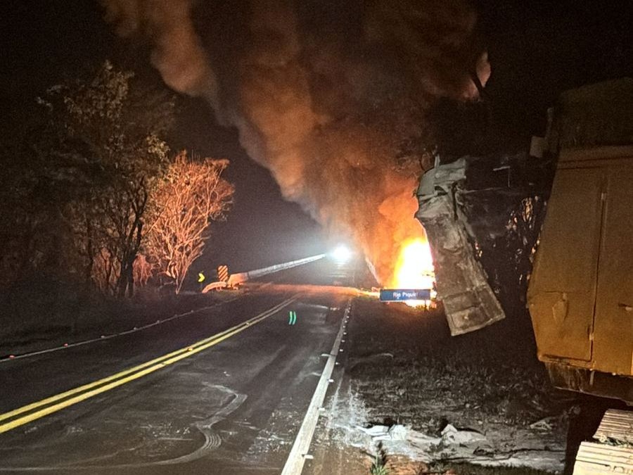 Após o impacto, o caminhão pegou fogo. O motorista, infelizmente, morreu carbonizado no local da colisão.