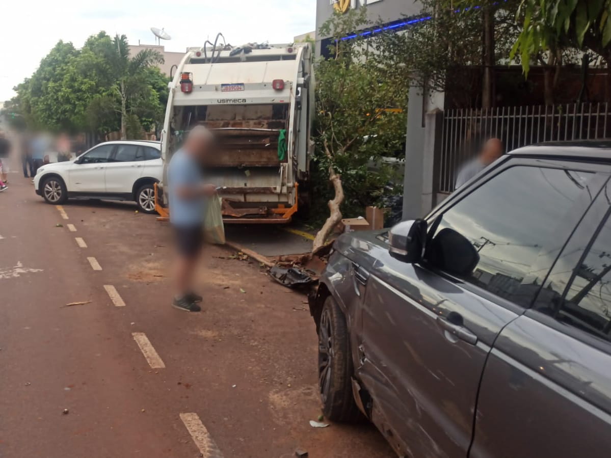 Um susto na manhã desta quarta-feira (24) no Centro de Toledo: um caminhão de coleta de lixo perdeu o controle e atingiu quatro veículos estacionados e um coqueiro na Rua São João. Felizmente, ninguém ficou ferido.