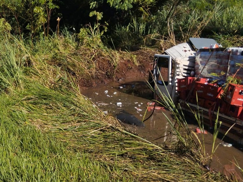 Um caminhão Ford/Cargo com placas de Toledo caiu em um reservatório de água na manhã desta quarta-feira (31) na PR-317, próximo ao Rio Santa Quitéria, entre Ouro Verde do Oeste e o distrito de Luz Marina.