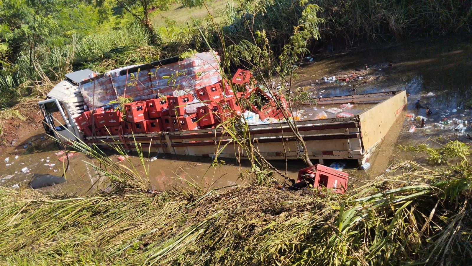 O acidente aconteceu por volta das 8h40, quando o motorista perdeu o controle da direção e saiu da pista, caindo na água. O veículo ficou parcialmente submerso na água e a carga de cerveja espalhada, com parte submersa.