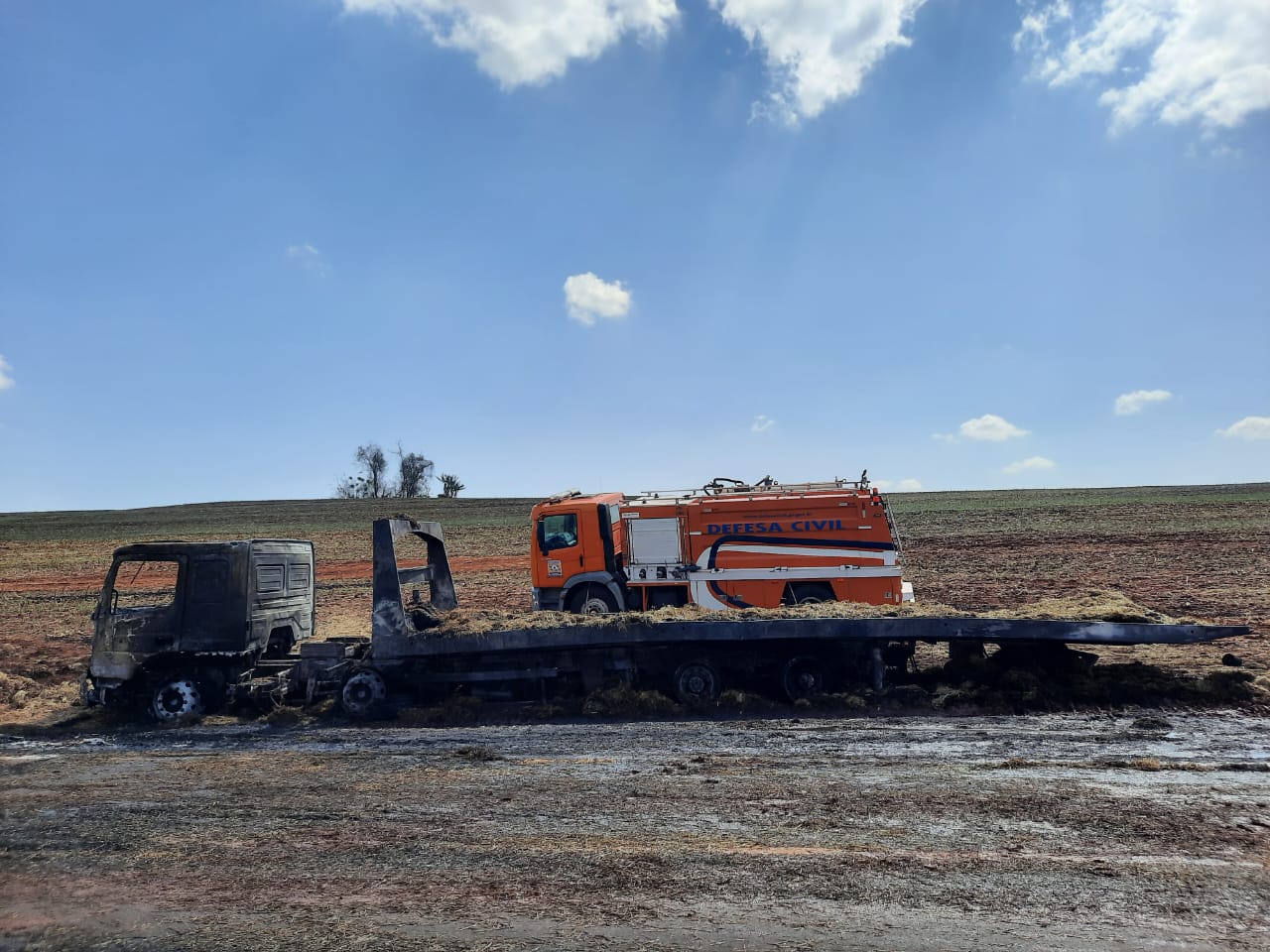 A Defesa Civil foi mobilizada e combateu o incêndio, mas o caminhão e a carga foram totalmente destruídos pelo fogo. O condutor, de 57 anos, não se feriu no incêndio.