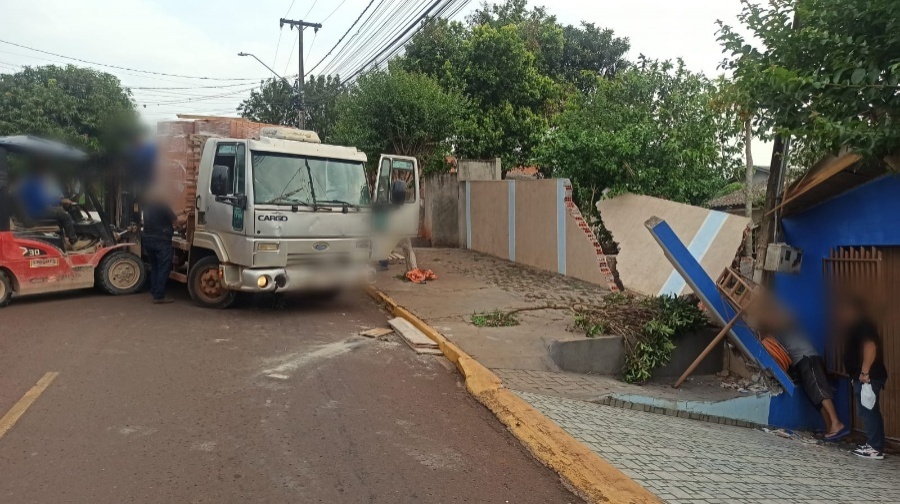 Um caminhão Ford Cargo carregado com tijolos sofreu um acidente na tarde desta terça-feira (15) na Rua Eugênio Comin, no César Park, em Toledo.