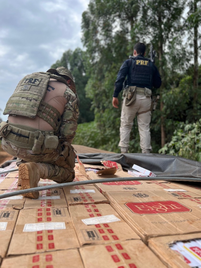 A Polícia Rodoviária Federal (PRF) apreendeu 300 mil maços de cigarros contrabandeados em Roncador, Paraná, na manhã de sábado (15). A carga, que partiu de Toledo, tinha como destino o norte do estado.