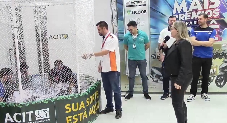 O quinto e último sorteio da campanha “Mais Prêmios para Você”, promovida pela Associação Comercial e Empresarial de Toledo (Acit), aconteceu no Shopping Panambi na tarde desta quarta-feira (28). Três motocicletas foram sorteadas entre os clientes que fizeram compras nas lojas participantes de Toledo durante o mês de agosto. Além disso, os vendedores cujos nomes estavam nos cupons sorteados receberam R$ 1.000,00 em dinheiro.