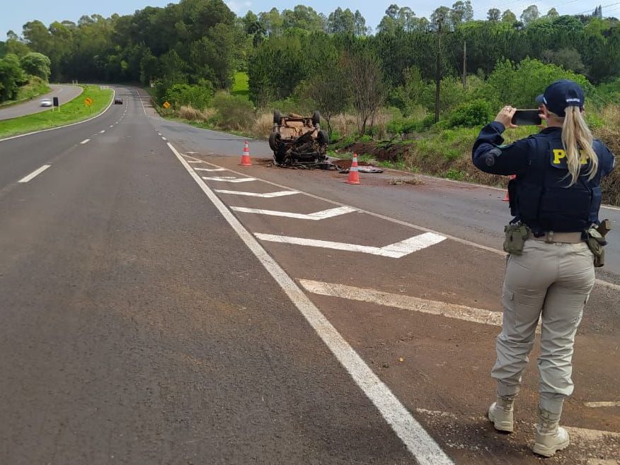 Segundo a PRF, um Fiat/Strada saiu da pista, colidiu com um barranco e capotou. O acidente aconteceu no viaduto da BR-163 (Contorno Oeste de Cascavel).