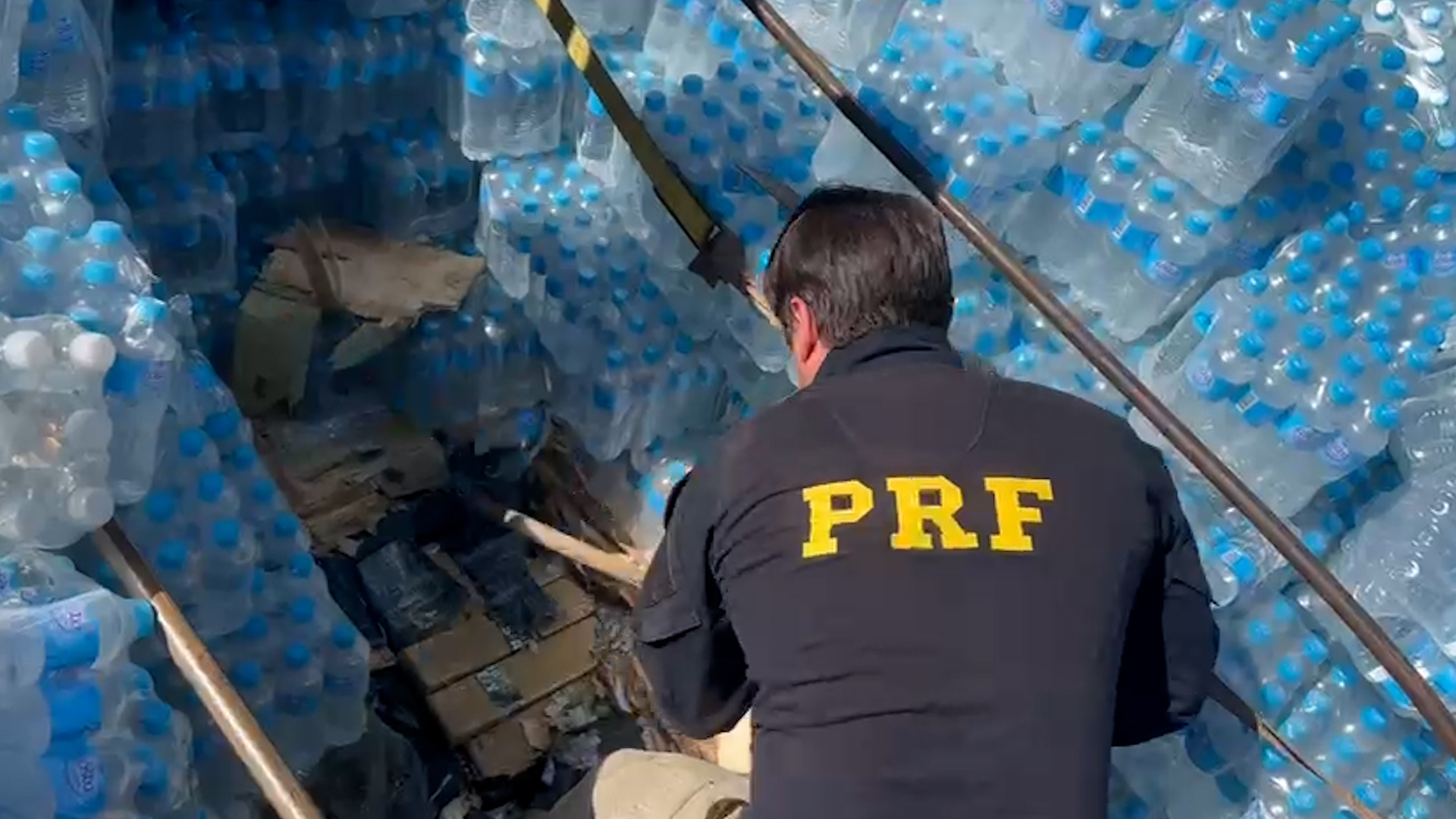 A carreta, que saiu de Toledo com destino a Porto Alegre, transportava água, alimentos, roupas e ração animal. No entanto, durante uma fiscalização de rotina, os agentes da PRF descobriram um compartimento secreto ocupando cerca de metade da capacidade do semirreboque. Dentro do fundo falso, estavam escondidos diversos tabletes de maconha.