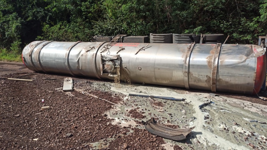 Uma carreta tanque carregada com resíduos industriais tombou na manhã de quarta-feira (10) na PR-317, entre Toledo e Ouro Verde do Oeste. O acidente aconteceu após o motorista perder o controle do veículo em uma curva, logo após a ponte sobre o Rio São Francisco.