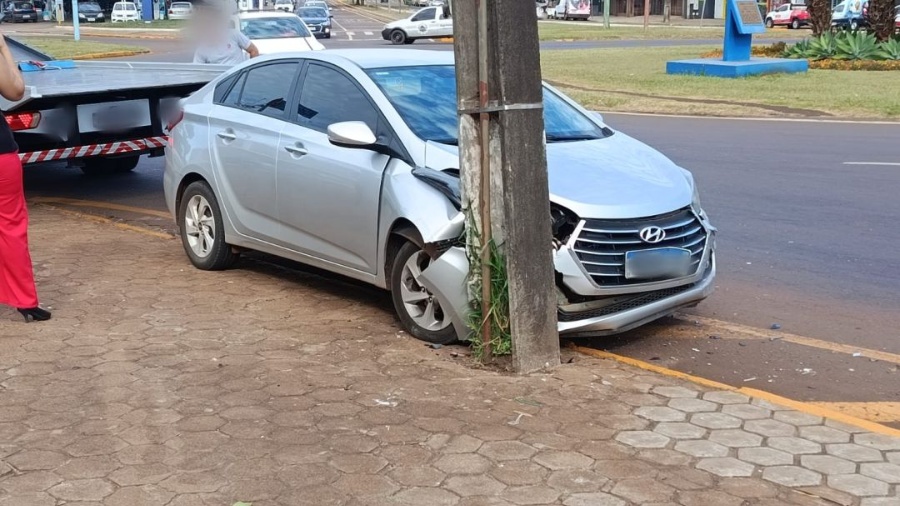 Um automóvel colidiu contra um poste de iluminação pública após um acidente envolvendo dois carros na manhã desta quarta-feira (28), em Toledo. A batida ocorreu em uma rotatória e, apesar dos danos visíveis, não deixou pessoas feridas.