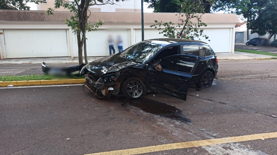 Com a batida, o Creta ficou desgovernado, subiu a calçada e colidiu contra a coluna de um prédio.
