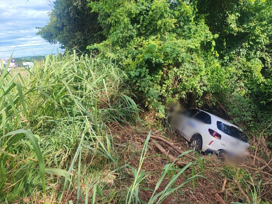 Com o impacto, o Onix saiu da pista e desceu o barranco, parando em uma área de mata às margens da rodovia.