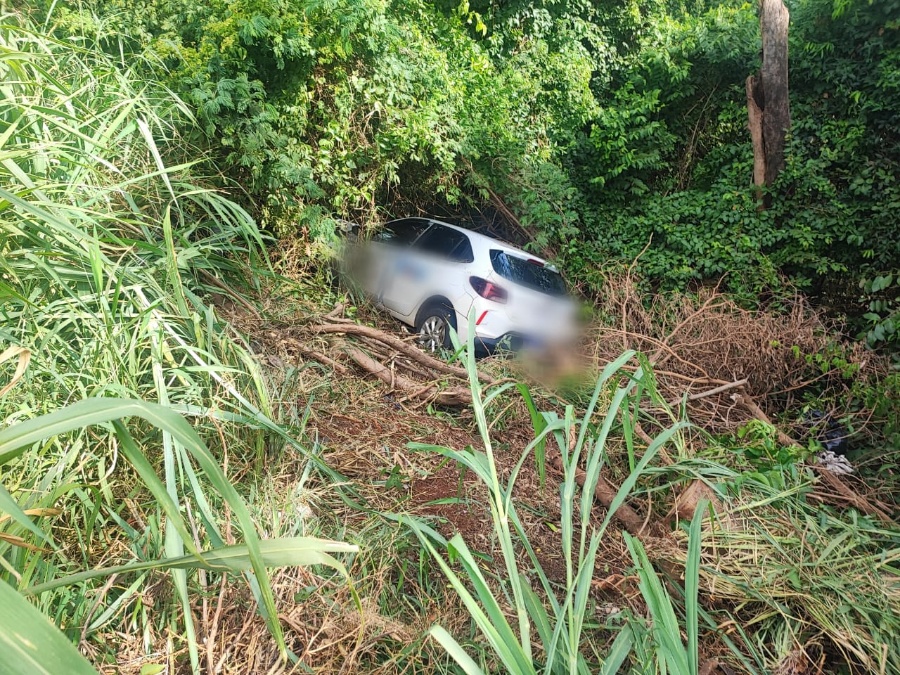 Um veículo caiu em um barranco e parou na mata, após se envolver em um acidente na tarde desta quinta-feira (21), por volta das 15h, na BR-163, próximo ao Rio Toledo, em Toledo.