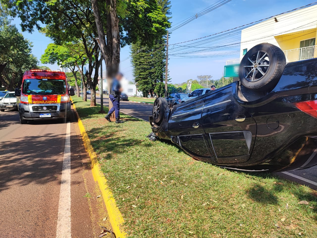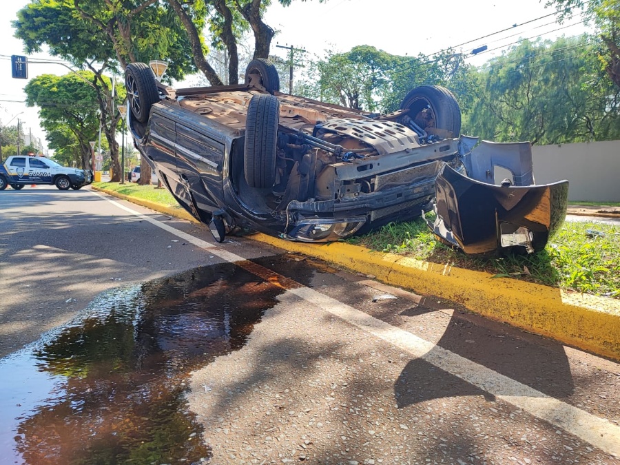 Um acidente de trânsito foi registrado na tarde desta sexta-feira (01), na Avenida Maripá, em Toledo. Um veículo GM/Prisma capotou após ser fechado por um Ford Fusion, que saía do estacionamento.
