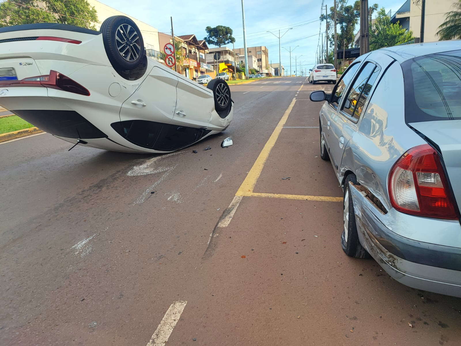 Conforme os relatos iniciais, um veículo do modelo HB 20S estava transitando pela Avenida Attilio Fontana quando colidiu com um Renault Clio que estava estacionado à margem da pista.