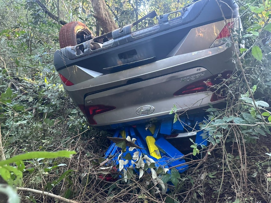 Durante a fuga pela BR-163 em direção à Cascavel, o motorista do HB20 jogou o veículo em uma lavoura, capotando na sequência. O homem fugiu a pé para dentro de uma mata fechada, mas com o apoio da Guarda Municipal de Cascavel, o suspeito foi localizado e preso pela PRF. No interior do carro, foram encontrados 426 kg de maconha.