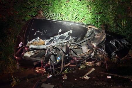 Mesmo assim, o condutor continuou a fuga até chegar próximo a uma mata, onde entrou com o veículo e colidiu com árvores. Ele abandonou o carro e correu para o meio do matagal, não sendo mais localizado pelos policiais, que fizeram buscas nas imediações.