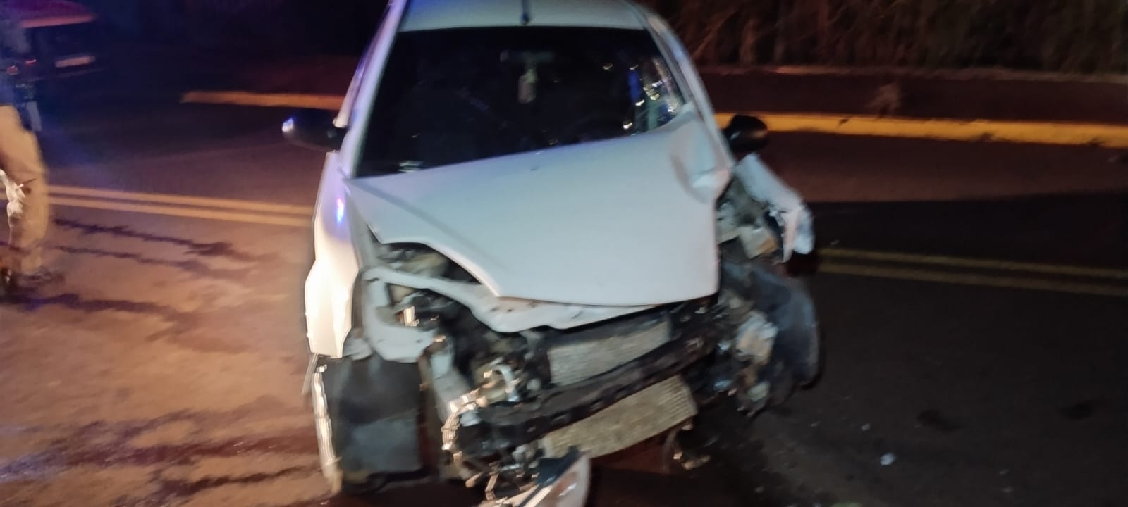 A motorista do carro,de 24 anos, ficou ferida no acidente e foi encaminhada pelo Corpo de Bombeiros para a UPA. O carro dela ficou destruído com o acidente.