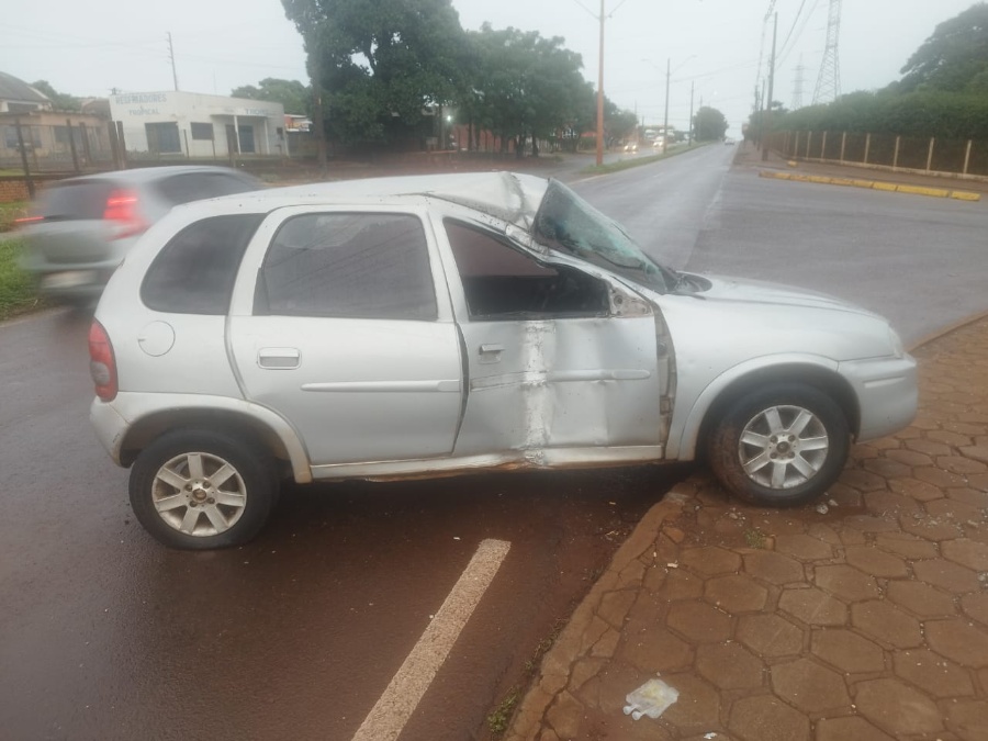 O veículo, um GM/Corsa, licenciado em Marechal Rondon, teve danos materiais. O poste de luz também foi danificado.