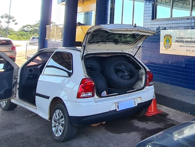 Um carro com placas de Toledo foi apreendido pela Polícia Rodoviária Federal (PRF) na tarde desta quinta-feira (21) na BR-163, em Guaíra. O veículo, um VW/Gol 1.0, de cor branca, estava carregado com 60 pneus de origem estrangeira, sem nenhuma documentação fiscal.