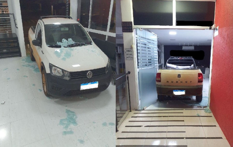 Felizmente, ninguém ficou ferido no incidente,sendo registrados apenas danos na porta da clínica odontológica.