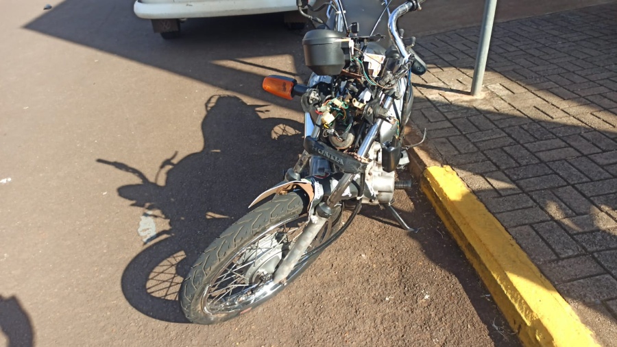 Um veículo fugiu após um grave acidente registrado na tarde desta sexta-feira (02), no centro de Toledo. O acidente envolveu uma moto Honda CG Titan e um carro de cor branca, possivelmente um Astra ou Vectra.
