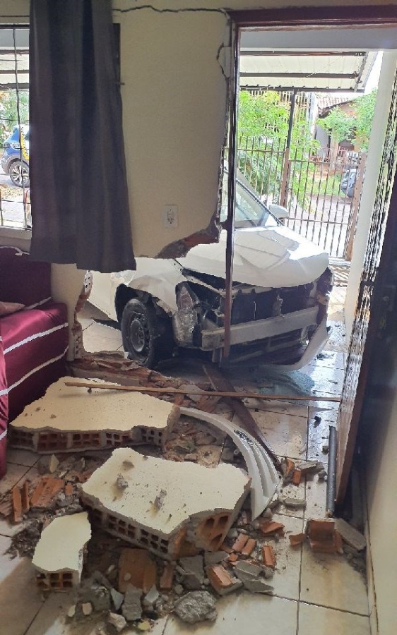 Conforme a Guarda Munipal, o sinsitro aconteceu na Rua do Pinhal. A condutora de um Toyota Etios seguia pela Rua Caldas Junior, quando perdeu o controle do veículo e envaiu a casa.