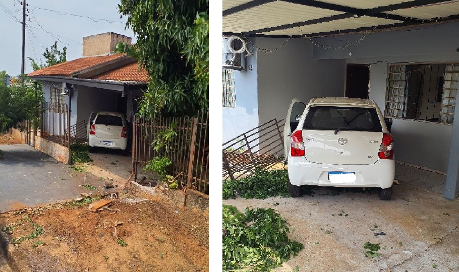 Um carro invadiu uma residência no início da tarde de quinta-feira (17), na Vila Pioneiro, em Toledo.