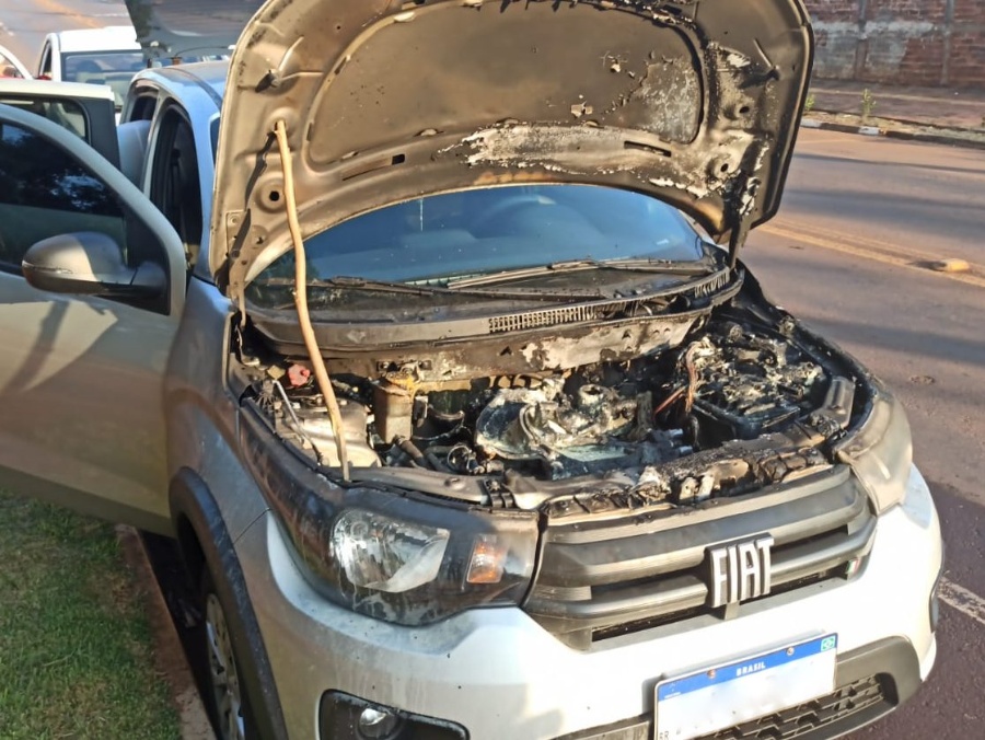 O caso aconteceu na Rua Pedro Álvares Cabral, Jardim Concórdia. O carro Fiat Mobi trafegava pela via, quando o fogo se iniciou no motor.