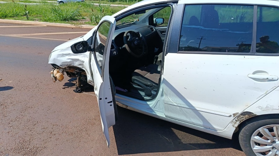 Durante o deslocamento, a motorista de um Volkswagen Fox tentou realizar a manobra irregular de retorno, momento em que ocorreu a colisão com um Fiat Fiorino que vinha logo atrás.