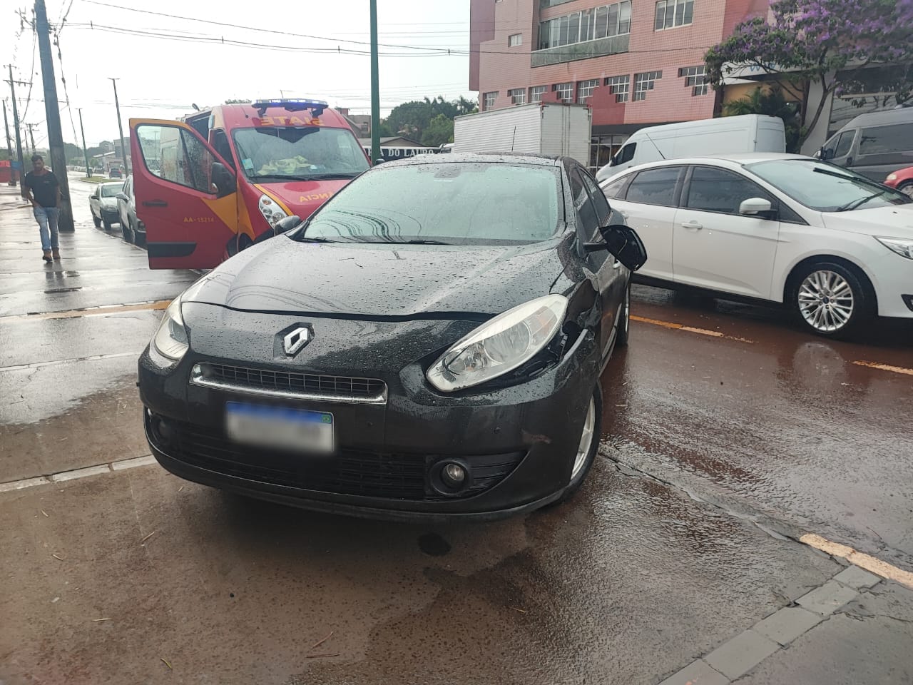 O condutor do Peugeot sofreu um ferimento no braço e foi atendido pelo SIATE, mas recusou atendimento médico. O motorista do Fluence não se feriu.