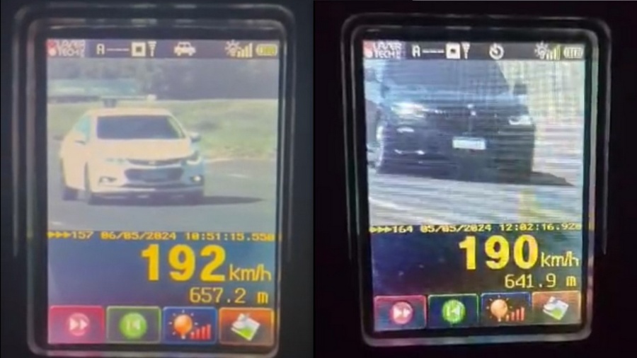 O flagra dos veículos, um GM/Cruze e uma BMW, aconteceu no trecho entre a Pista de Arrancada e Vila Ipiranga, em fiscalização realizada no último final de semana (05 e 06 de maio). A velocidade permitida no trecho é de 110 km/h.